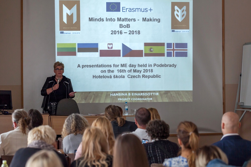 Ve dnech 15. až 17. května 2018 bylo na naší škole rušno. Popravdě i ve dnech předcházejících a následujících, protože naše škola přece nikdy nespí:-) V probíhajícím projektu Erasmus+ KA2 Minds into Matters jsme dostali pro tento čas roli organizátora tzv. Multiplying Event, konference, jejímž cílem bylo seznámit odbornou i laickou veřejnost s cílem projektu. Odborná veřejnost nakonec početně převážila, kromě vedení místních hotelů a restaurací, představitelů profesně zaměřených sdružení (Asociace vzdělávacích zařízení pro rozvoj venkovského prostoru, Asociace malých a středních podniků a živnostníků ČR) se konference zúčastnili i učitelé a studenti naší školy. Přivítali jsme koordinátorky z Islandu a partnery z Litvy, Estonska, Polska a Španělska. Dostavili se i zástupci z Vysoké školy ekonomické v Praze a Vysoké školy polytechnické v Jihlavě. Příspěvky byly více než zajímavé, hosté z francouzské partnerské školy v Peyregoux zvlášť vysoce ocenili chystaný výstup z našeho projektu, tzv. Book of Business, jehož pracovní verzi za naši školu představily projektové mentorky Zuzana Hummelová a Eva Svobodová, za Španělsko Mariví Gracia. BoB zaujal mnohé z účastníků, kteří již projevili zájem o účast v dalším pokračování projektu. Ti, co vydrželi konferenční maraton až do konce, byli odměněni skvělým obědem s bezchybným servisem, jak jinak než v podání studentů a odborných učitelů naší školy. Odpoledne jsme navštívili jako příklady dobré praxe rodinné firmy, jmenovitě Muzeum Jendy Rajmana v Rožďalovicích, biofarmu v Košíku a hospůdku v Tuchomi. Všem, kteří s organizací pomáhali, patří obrovský dík. Konference opět zviditelnila naši školu v očích odborné i laické veřejnosti a stala se důstojným příspěvkem k blížícím se oslavám padesátin naší duchem stále mladé a energií sršící školy!